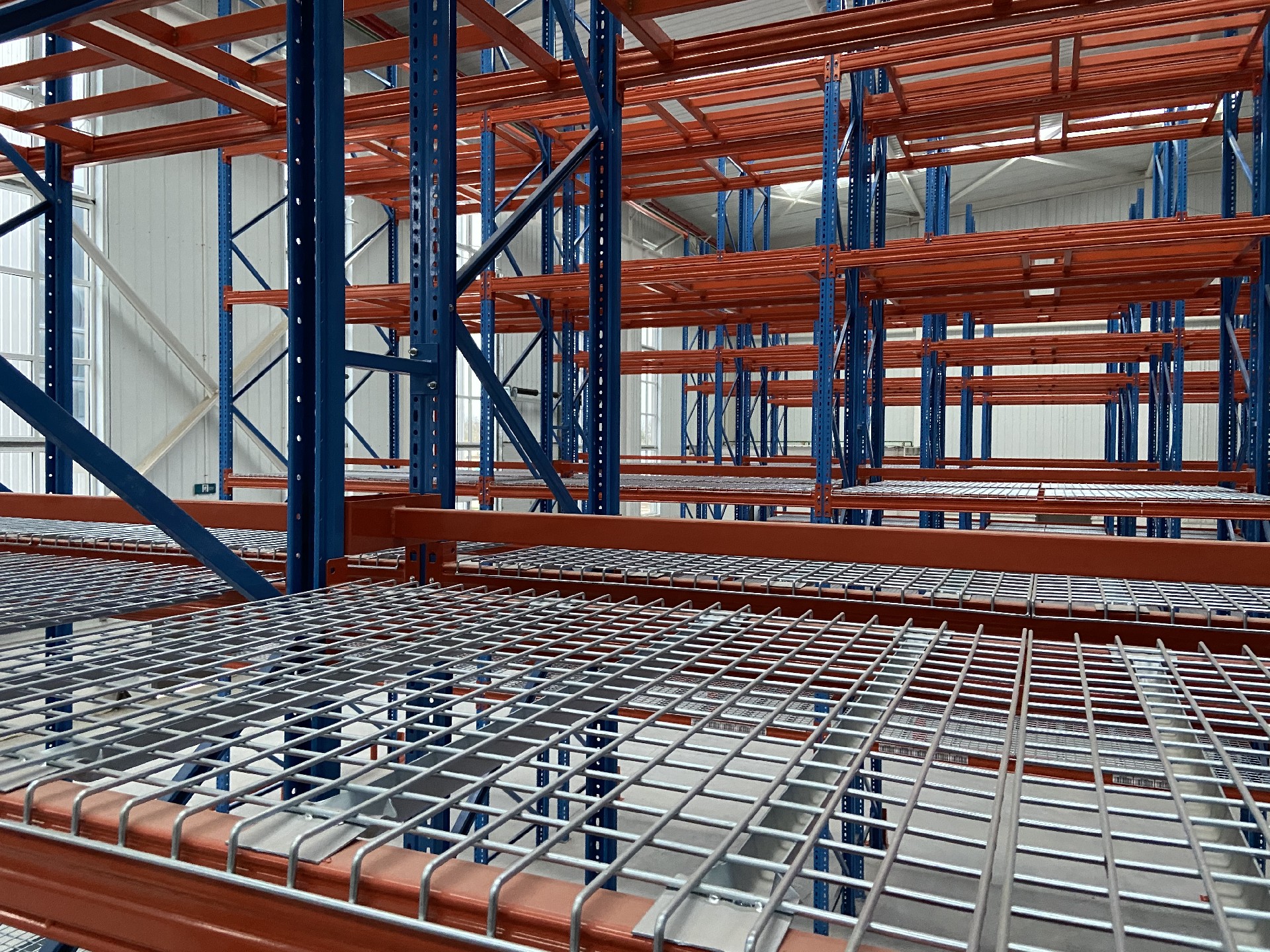 货架层网原材料采用高质量的冷拔丝喷焊而成,形成网目为50*50或者50*100的网片,底部加加强筋加强,两边折弯放置于货架横梁之上,保证货物安全。一般载重可达3T,表面处理为镀锌及喷塑处理。