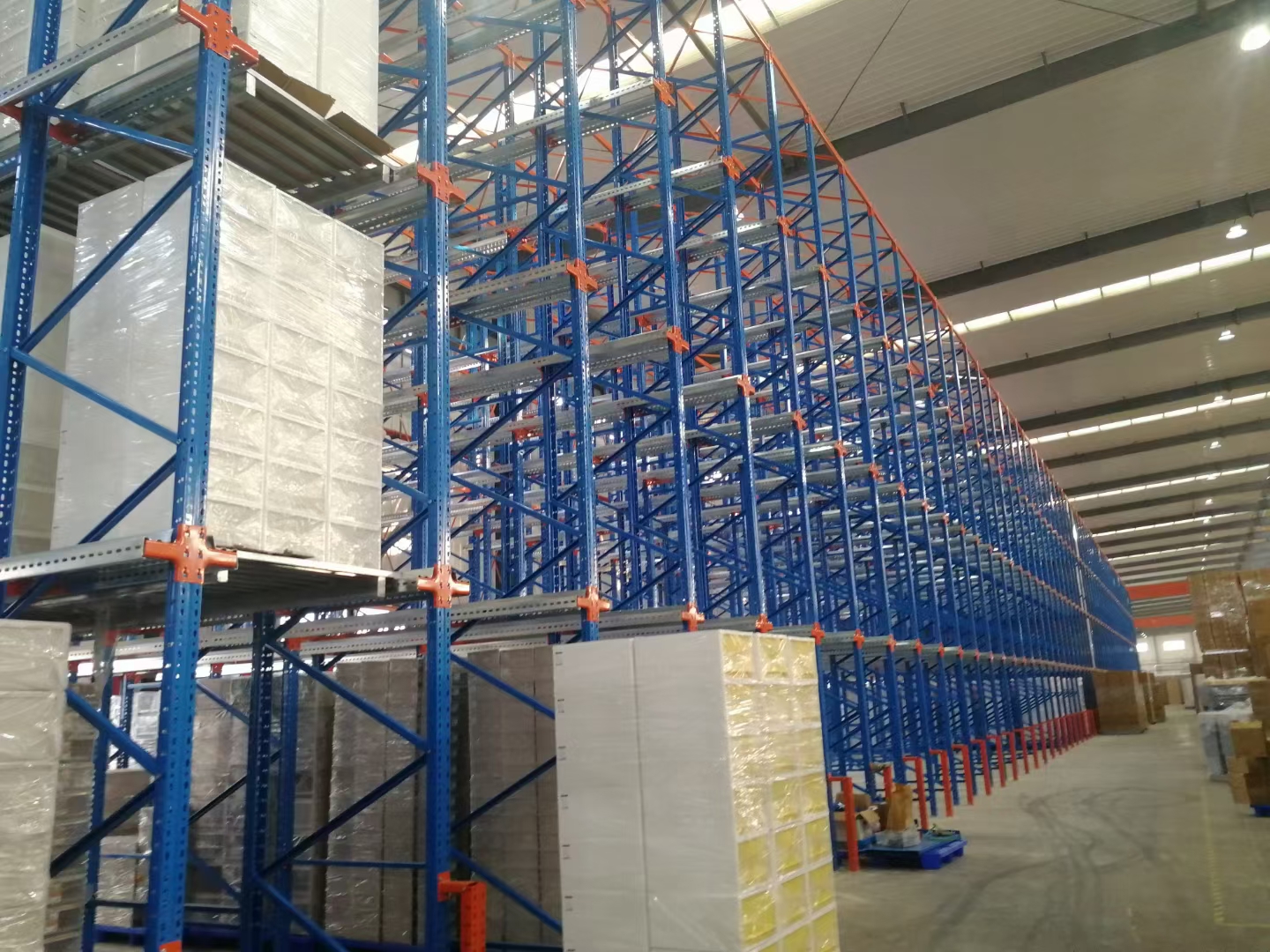 1、 货物存储通道亦为叉车储运通道,是存储密度较高的一种形式货架。
