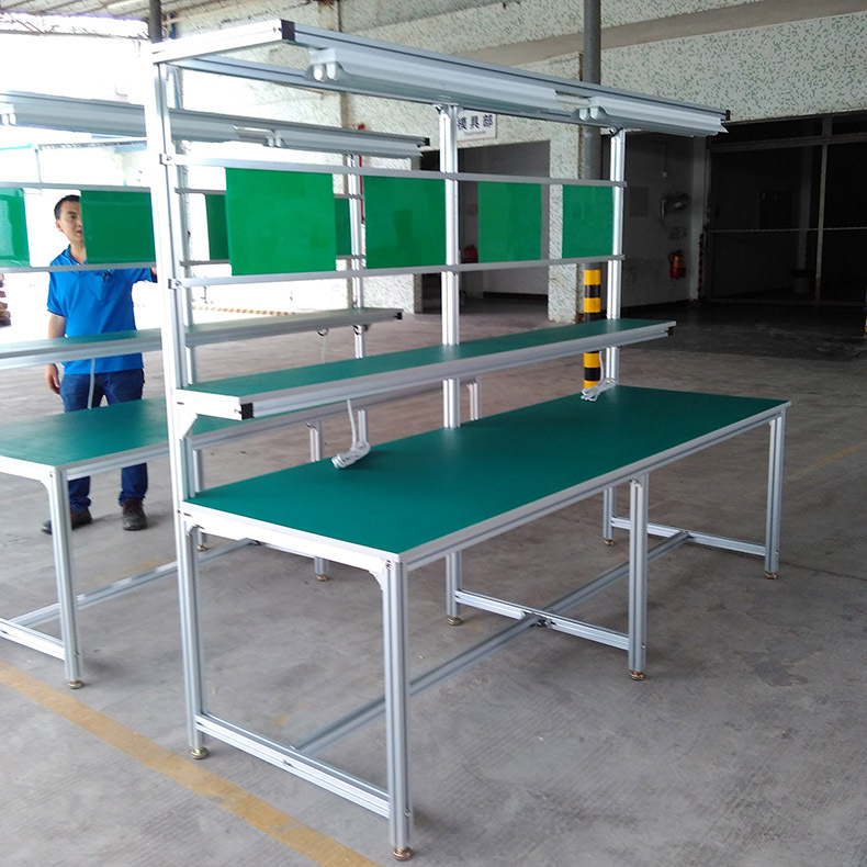 铝型材一般根据承重要求,可选择4040欧标 或者4040加厚铝型材,或者4545铝型材,一般的桌面承重50KG以内,比如手机配件组装线,插件线,流水线等手工操作台可用。